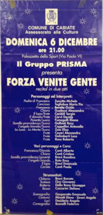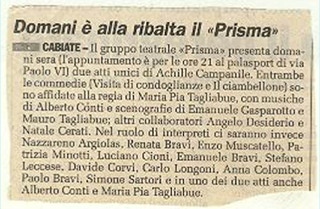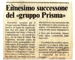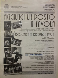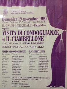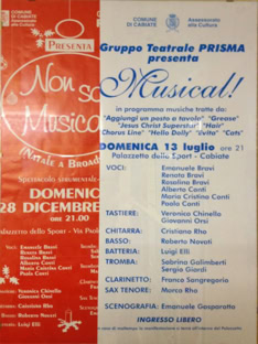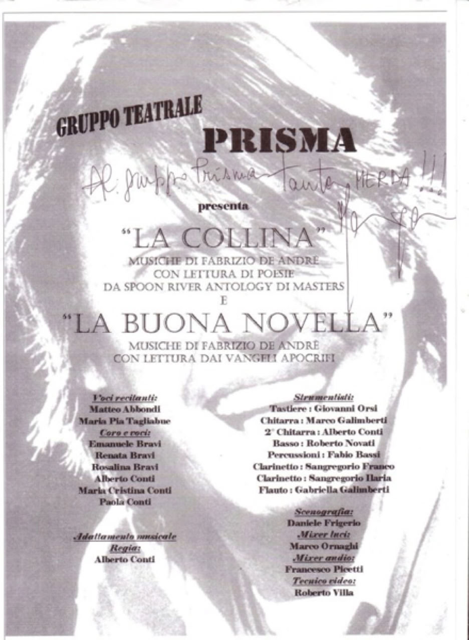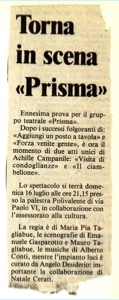 Una carrellata storica delle locandine degli spettacoli proposti dal Gruppo Teatrale Prisma, che testimonia la versatilità e la varietà di talenti che compongono il gruppo.